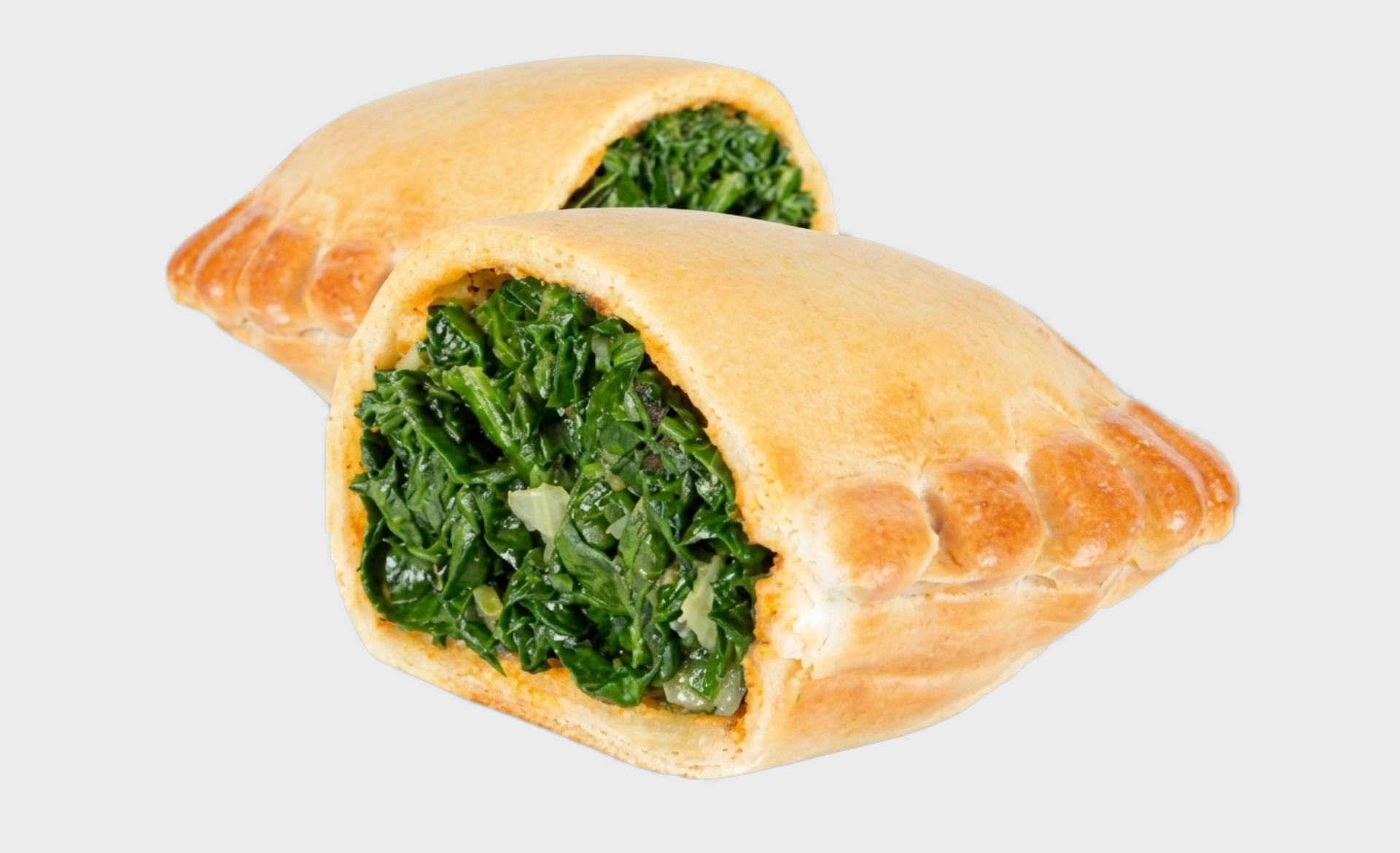 The Argentinian Spinach Empanada is a half-moon shaped flour dough stuffed with spinach, cheese, and chopped onions.